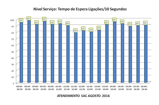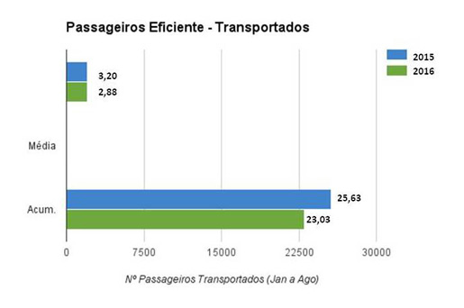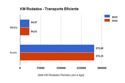 Pelo gráfico 2 pode-se observar que, em média, 90% das ligações telefônicas são atendidas em até 10 segundos de espera. Para atender a todas as solicitações, três mil pessoas por mês, em média, nos últimos dois anos (gráfico 4), os ônibus do Transporte Eficiente rodam, em média, 34 mil km por mês, conforme demonstra o gráfico 3.